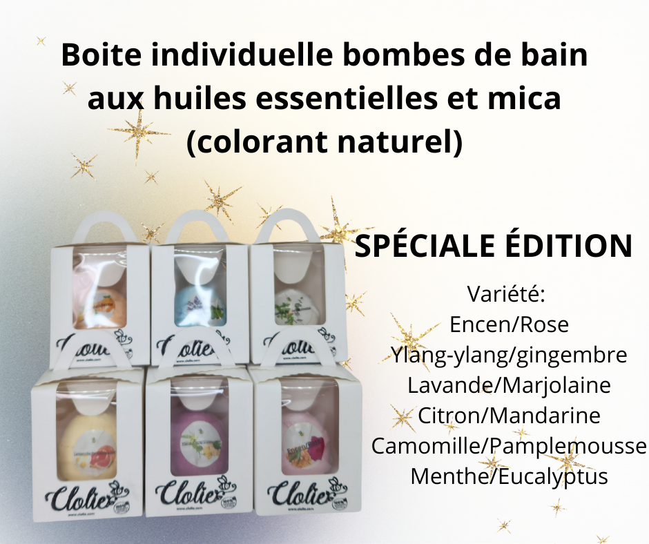 Boite individuelle bombe de bain aux huiles essentielles et mica (colorant naturel)